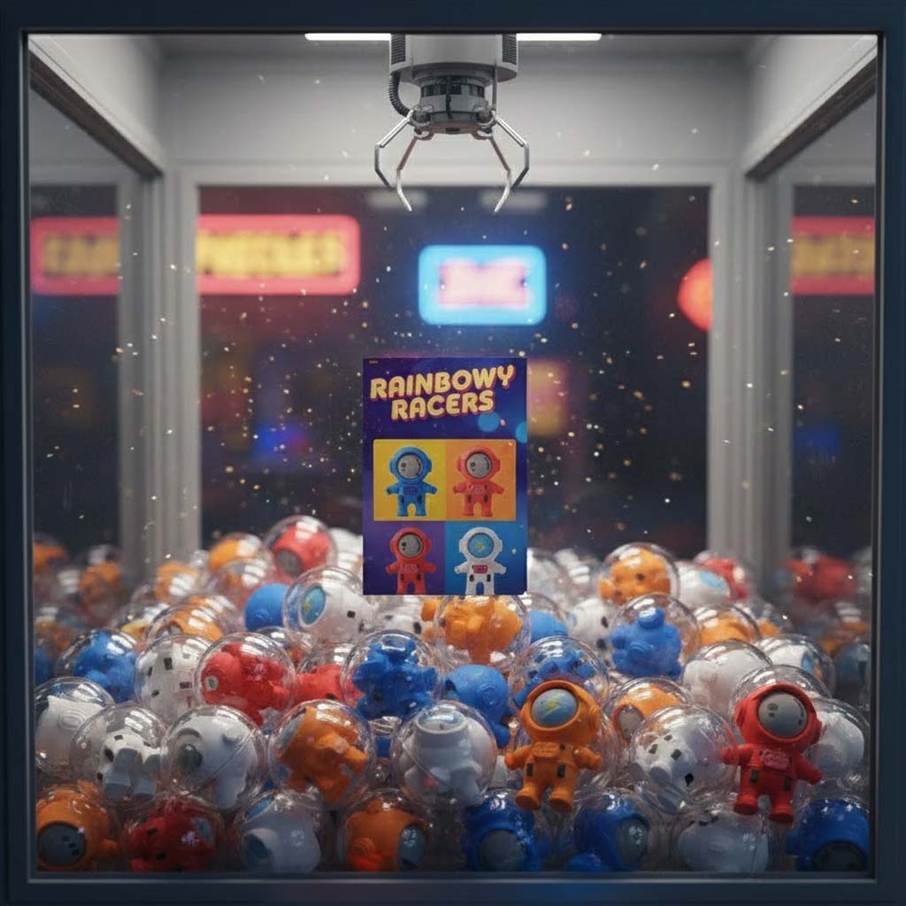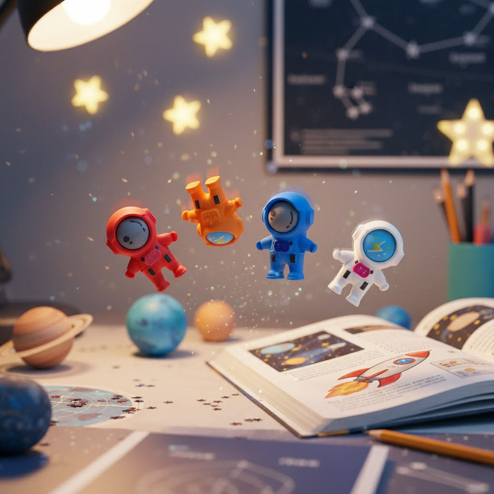 Get ready to blast off in style with RAINBOWY RACERS⢠(or RAINBOW ERASERSš) ! These adorable erasers come in a lucky claw of 1 out of 4 vibrant colors, each featuring a heroic colorful astronaut design. Plus, they have detachable parts for extra fun! Perfect for brightening up any pencil case. (Psst... they're also great for erasing mistakes!)
