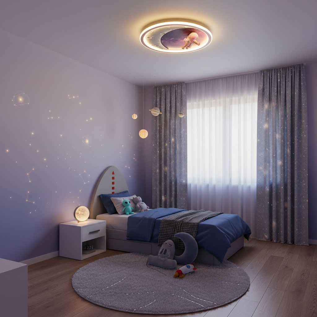 COOKIE MOON STAR's beautifully illustrated universe is the perfect way to transport your child to a world of sweet dreams! Available in blue or pink hues, this stunning ceiling lamp will make their bedroom a cosmic wonderland. Get ready for lift-off!