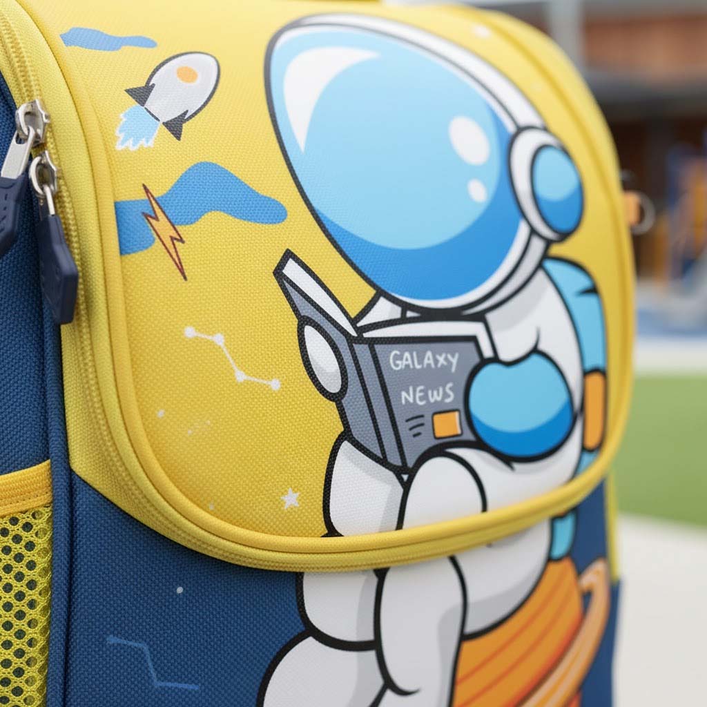 Make every trip to school an adventure with GALAXY NEWS-FLUSH™! This boxy schoolbag features a trendy astronaut sitting on Saturn, catching up on the latest news while doing his private business. With a large capacity, it's perfect for little ones with big imaginations. Buckle up and blast off to school in style!