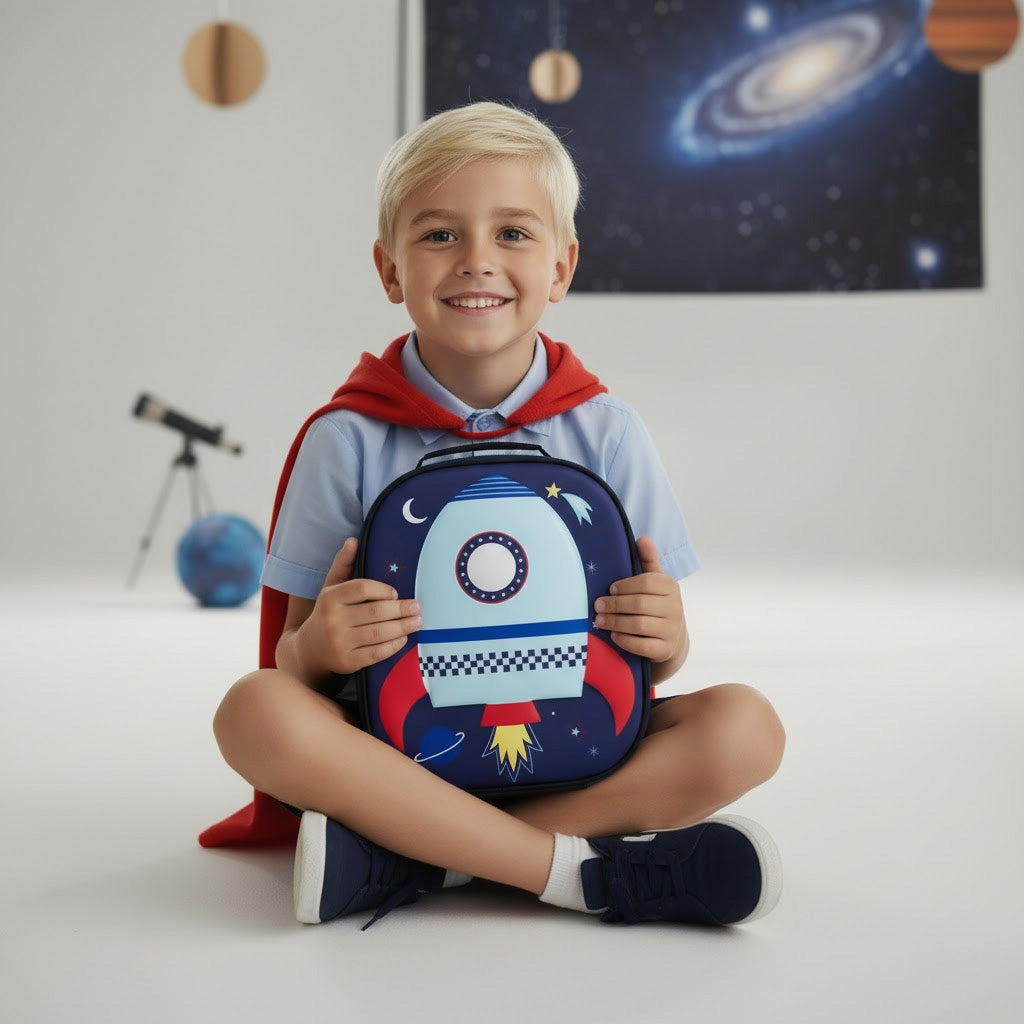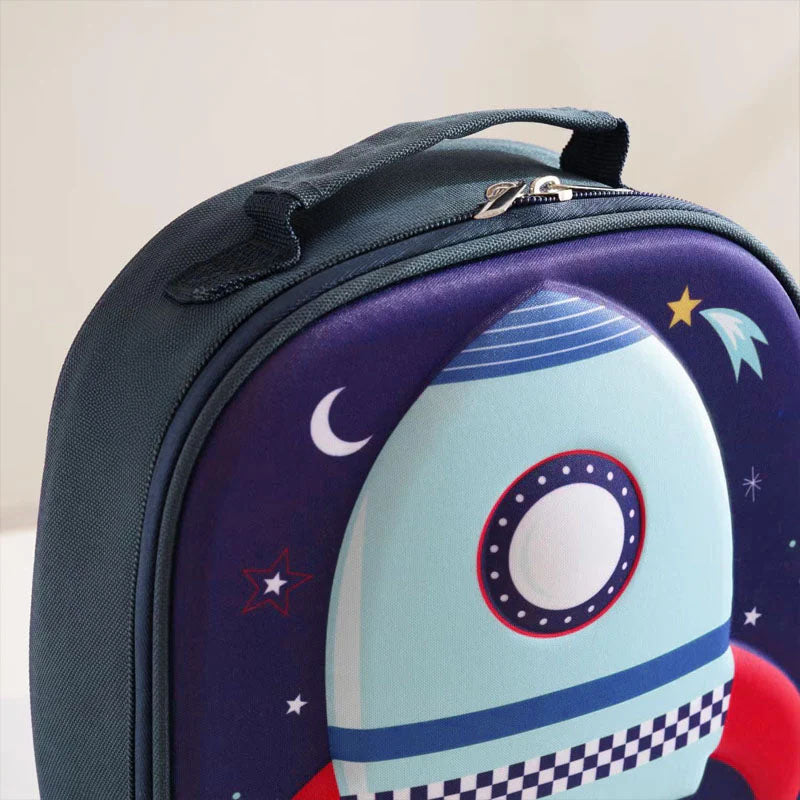 Get ready to blast off into lunch time with the adorable LAUNCH TIME™ children's lunchbag! With a cute rocket launching towards the galaxies, this insulated bag has a large capacity to pack all your little one's favorite treats. Say goodbye to boring lunches, and hello to out-of-this-world meals!