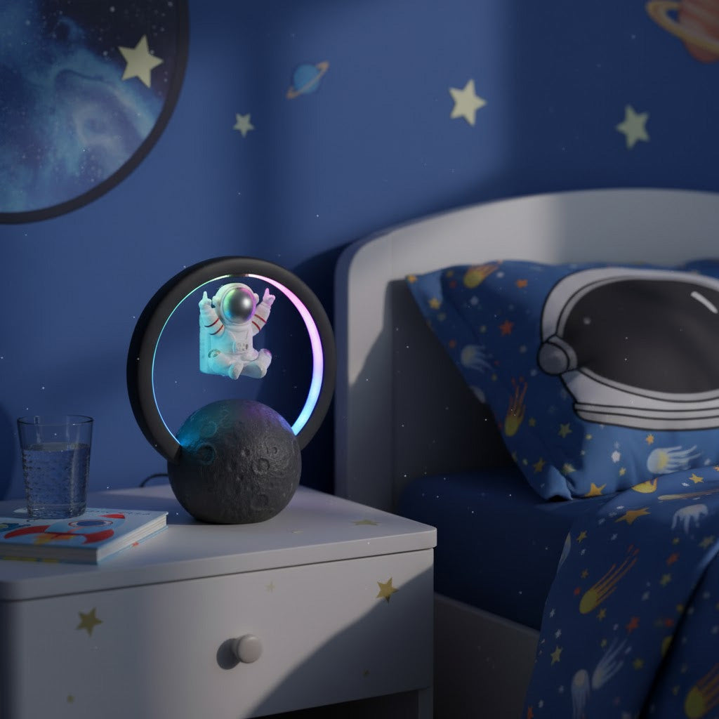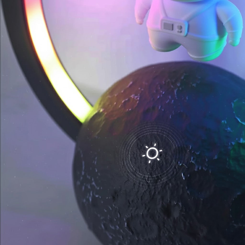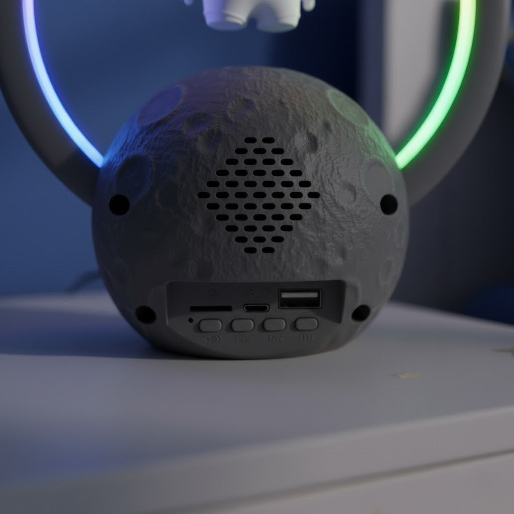 Get ready to blast off into a musical galaxy with ROCK'N ROAM™ Bluetooth speaker lamp. Watch in awe as an astronaut levitates on the moon while the speakers emit a rainbow of ambient light. Get ready to rock and roll (or 'rock' and roam!) with this unique and playful addition that will take your tunes to a whole new level. No gravity required!