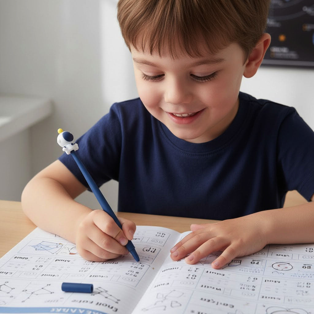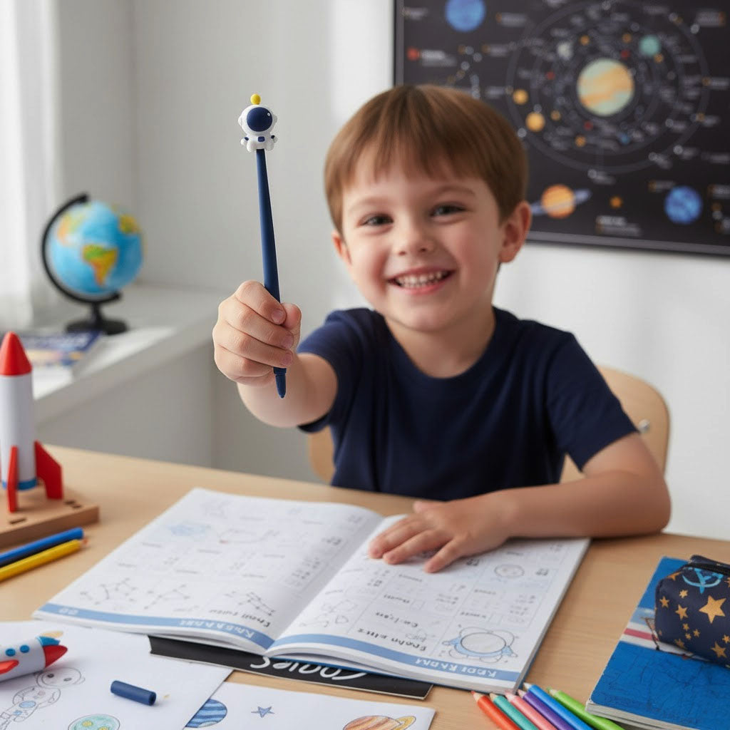 Your space-loving child will flip for the ROCKY RIDER™! This charming gel pen features an adorable astronaut on top and a cushioned silicone grip that feels wonderful in little hands. The reinforced barrel laughs off bumps and drops, making it tough enough for any young explorer. Perfect for kids who want their writing tools to match their cosmic dreams!