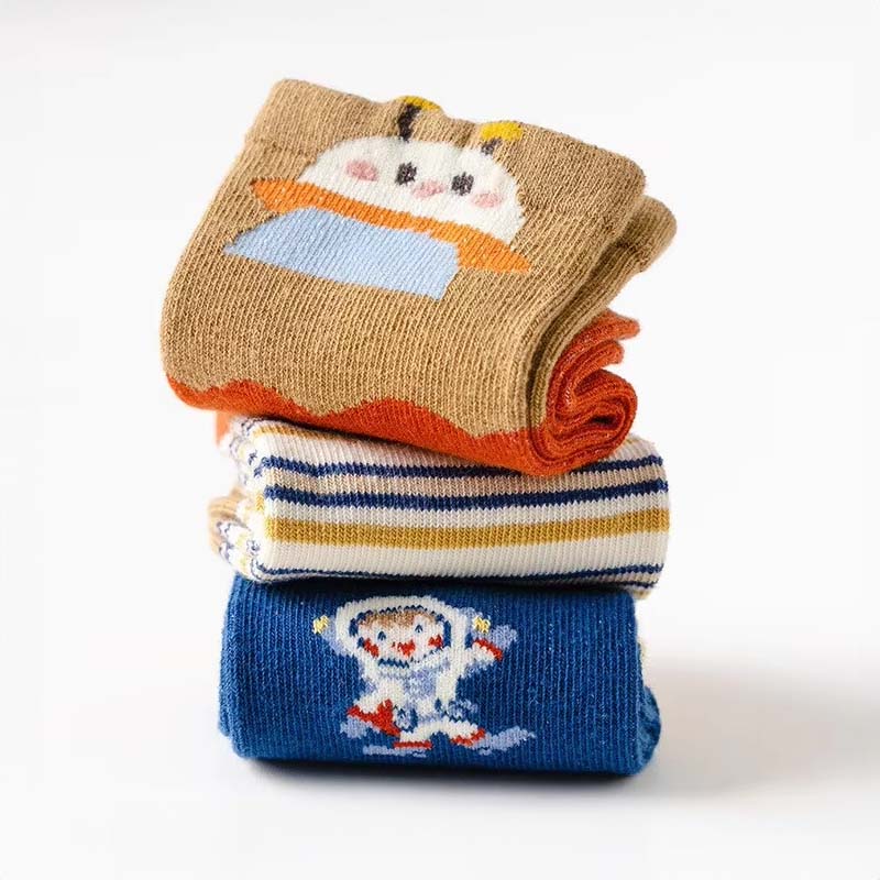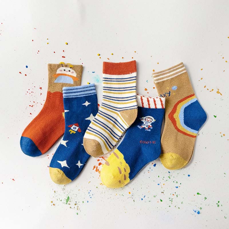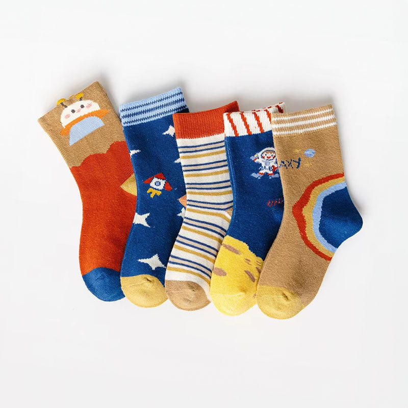 Blast off into fun with SMILEY FLEET's one-of-a-kind space-themed socks! Each pair features a unique design, from brave astronauts to friendly aliens and rockets. The adorable details and vibrant colors will make your little ones feel like they're part of a cosmic adventure!