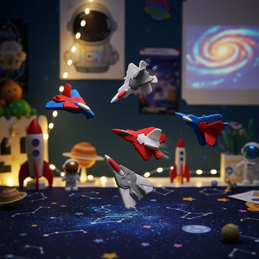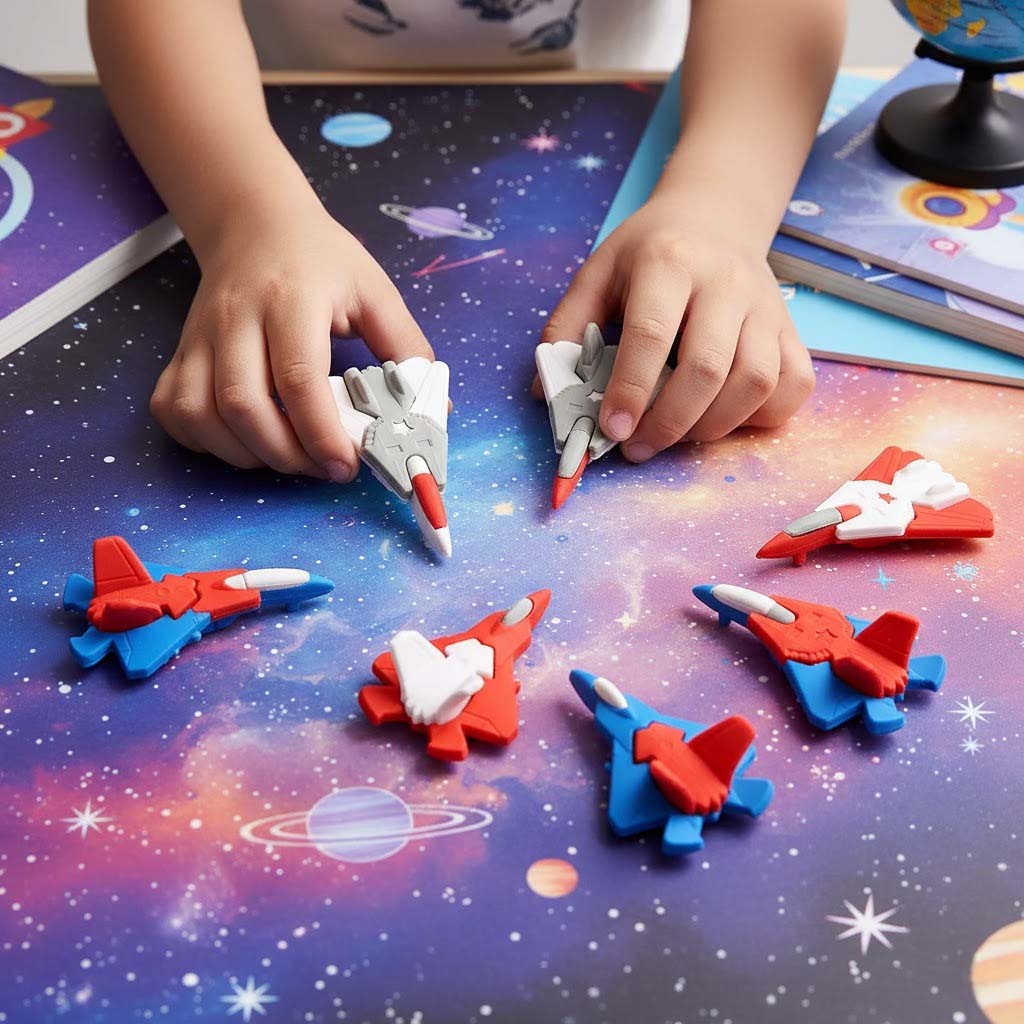 Rev up the fun with SPEEDY RACERS™ - the detachable speedy erasers! Each set comes with a colorful space plane in heroic blue and red. And as a bonus, every lucky claw gives you a chance to collect 4 out of 6 unique styles. Start your engines and collect them all!