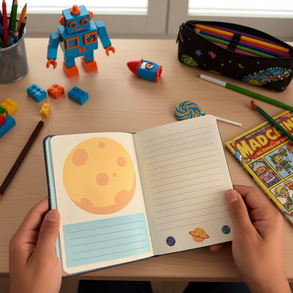 Never lose your spot with the trusty built-in bookmark, the perfect co-pilot for your child's writing adventures! Mark your place and take off to new destinations. Convenience and fun in one!