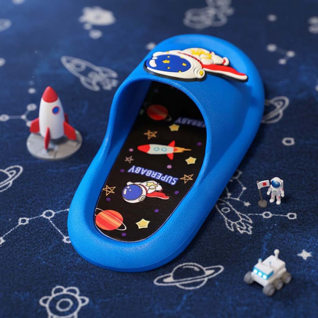 Embark on a journey of comfort with SUPERBABY™ slippers. The plush insole, adorned with captivating illustrations of rockets and planets, provides a cushioned oasis for your child's feet. Let them comfortably explore the outer reaches of their imagination.